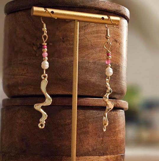 og tilbyder håndlavede, guldbelagte øreringe med perler, der kombinerer tidløs elegance med unikt design. Hvert smykke er skabt med kærlighed og omhu, så du får et helt særligt stykke, der udstråler både stil og personlighed. Her er alle designs unikke fordi skønhed fortjener at være personlig